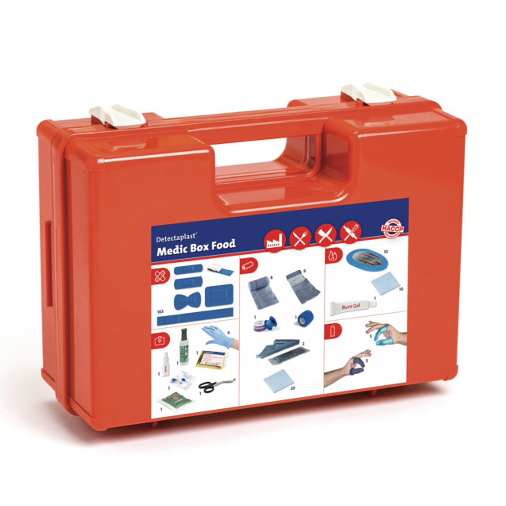 Detectaplast beschikt over een zéér ruim gamma EHBO koffers die werden samengesteld om te voldoen aan de HACCP normen en zo bij te dragen aan de voedselveiligheid. Zo zijn er basiskoffers beschikbaar met voornamelijk blauwe pleisters, maar ook een EHBO kit specifiek samengesteld voor een bakkerij, slagerij, horecazaak en de voedingsindustrie. Elke koffer heeft een andere inhoud op maat gemaakt voor de betreffende voedingssector!